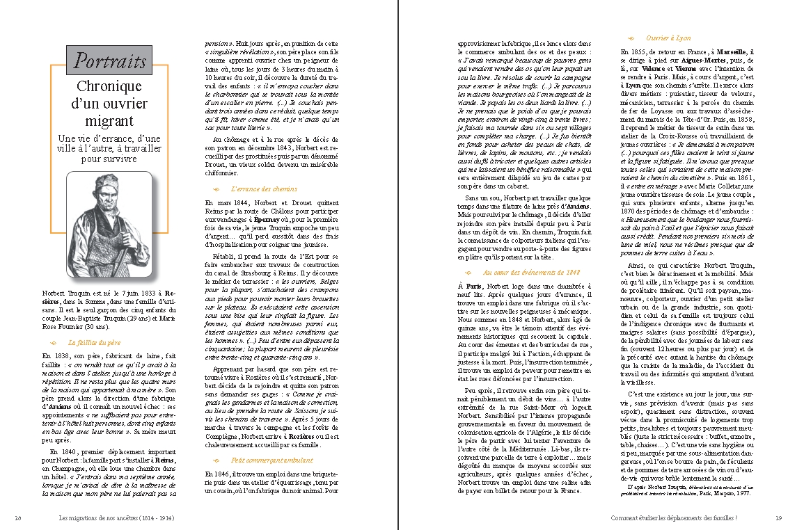 Le XIXe siècle est celui des migrations des ruraux vers les villes. Grâce à l'analyse de cas concrets familiaux, ce fascicule vous aide à comprendre les raisons et les modalités de ces départs et à reconstituer les chemins migratoires. Chacun y trouvera donc des éléments et des pistes de recherche pour retracer la migration de ses propres ancêtres.