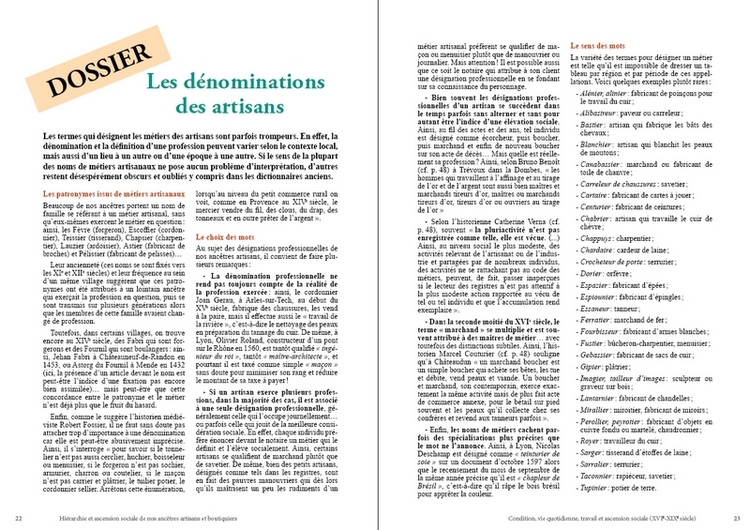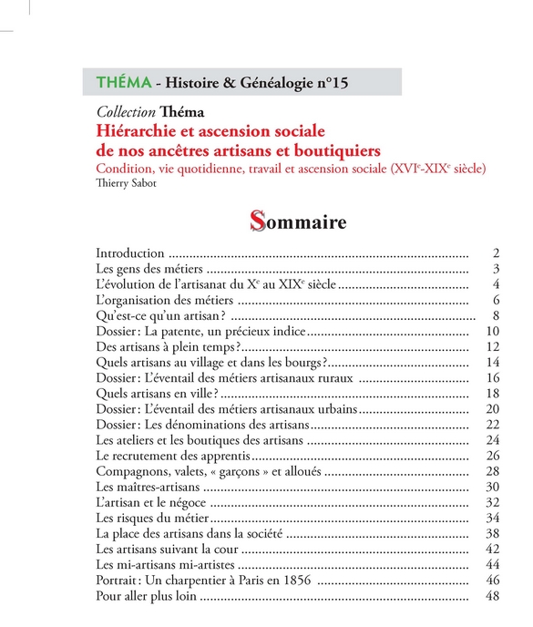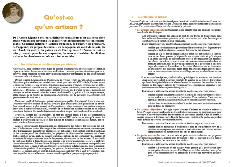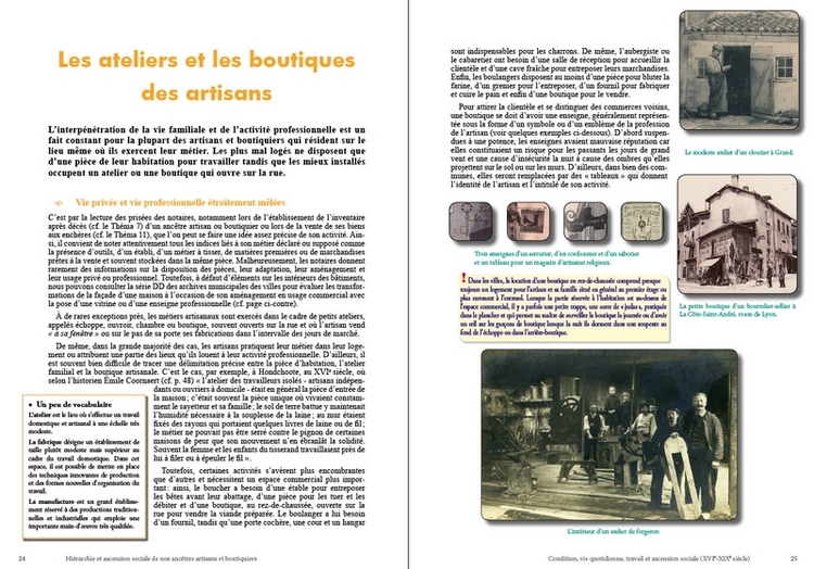 Réf.: 15Avec ce fascicule, nous allons découvrir la situation des artisans et des boutiquiers urbains et ruraux, de chaque profession, sur l’échelle sociale. Nous allons voir comment, sur plusieurs générations, les familles d’artisans et de boutiquiers pouvaient s’extraire de leur condition, s’élever socialement ou parfois régresser.