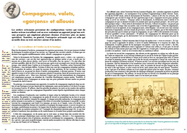 À noter que, comme les frontières entre artisanat et industrie sont floues, j’ai choisi, dans ce Théma, de n’aborder que très peu les artisans salariés des villes et des campagnes, notamment ceux travaillant dans le textile. Une plus large place leur sera consacrée dans un prochain Théma dont le sujet sera Les ouvriers et les mineurs de l’industrie.