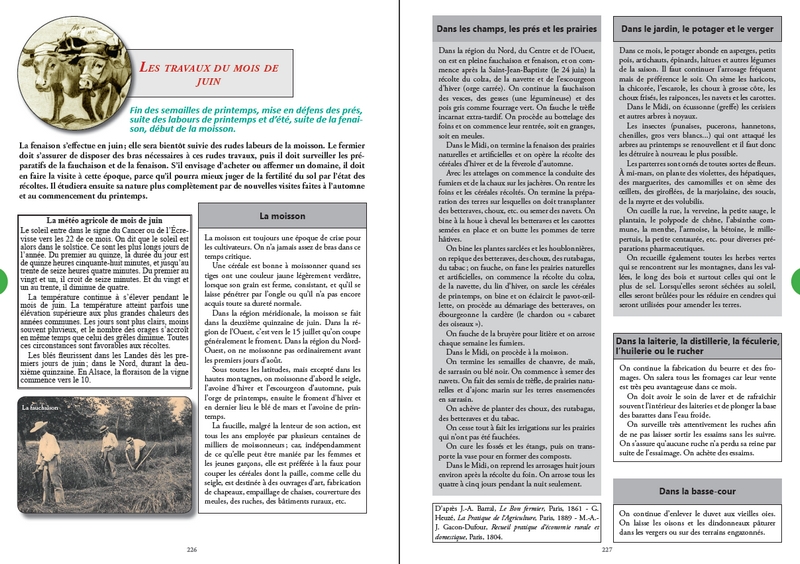Parce que l’Almanach était bien souvent le seul livre que possédaient nos ancêtres ruraux, cet ouvrage est conçu comme un Almanach, avec ses calendriers solaire et lunaire, ses invocations religieuses, sa kyrielle de saints protecteurs, ses pèlerinages, ses conseils agricoles, ses foires et ses dictons de sagesse populaire... mais il est bien plus qu’un Almanach ! Il est surtout un livre d’Histoire qui se veut le témoignage d’un passé oublié... Celui d’une France rurale perdue, avec son rythme régulier de festivités et de travaux agricoles saisonniers, ses gestes du quotidien, ses traditions, ses croyances, ses superstitions, ses usages anciens et ses vieilles pratiques ancestrales.